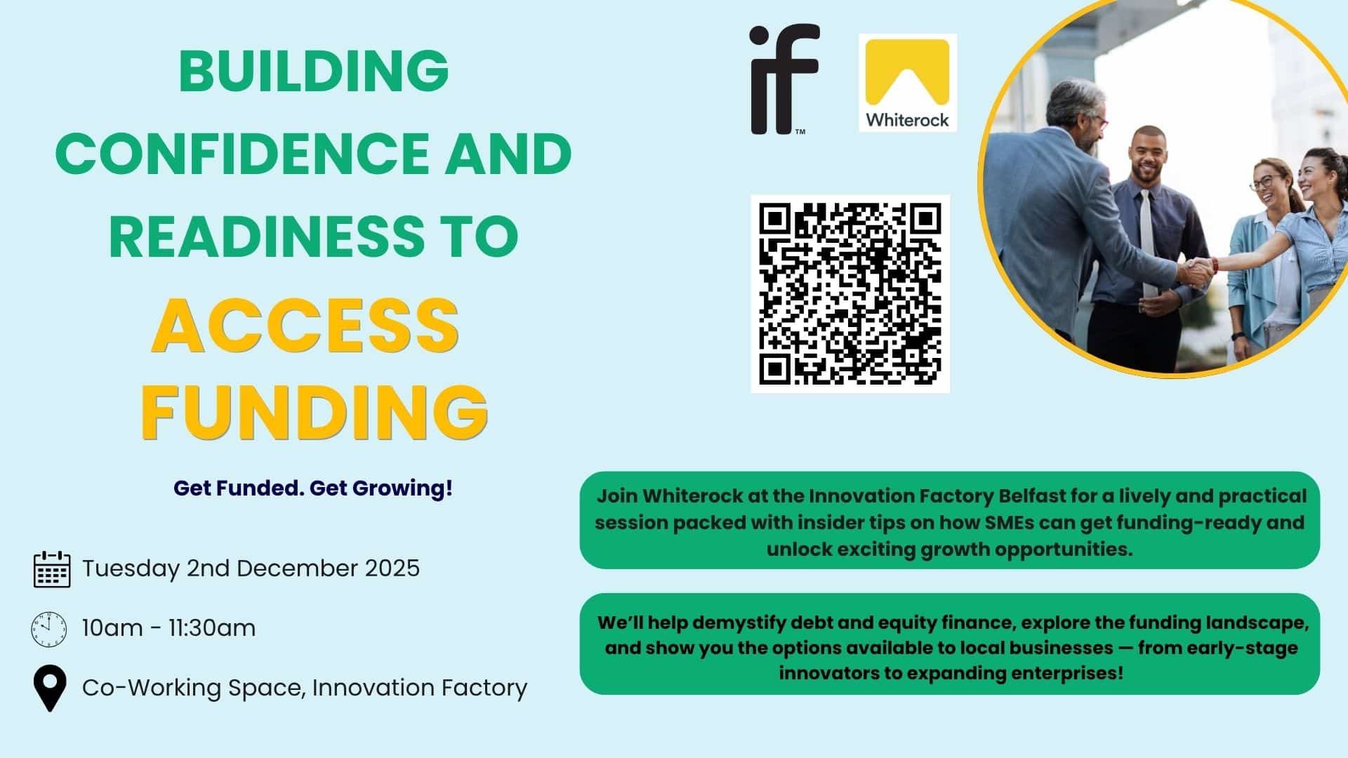 Innovation Factory Forthriver Business Park, 385 Springfield Road, Belfast, Belfast, United KingdomCLICK HERE TO REGISTER Securing external finance can be a game-changer for growth—but preparation is key. Join us for practical insights tailored to small and medium-sized businesses on how to prepare for external funding and unlock new opportunities. We will discuss the benefits of strengthening your financials, refining your business model and how to ... Read more